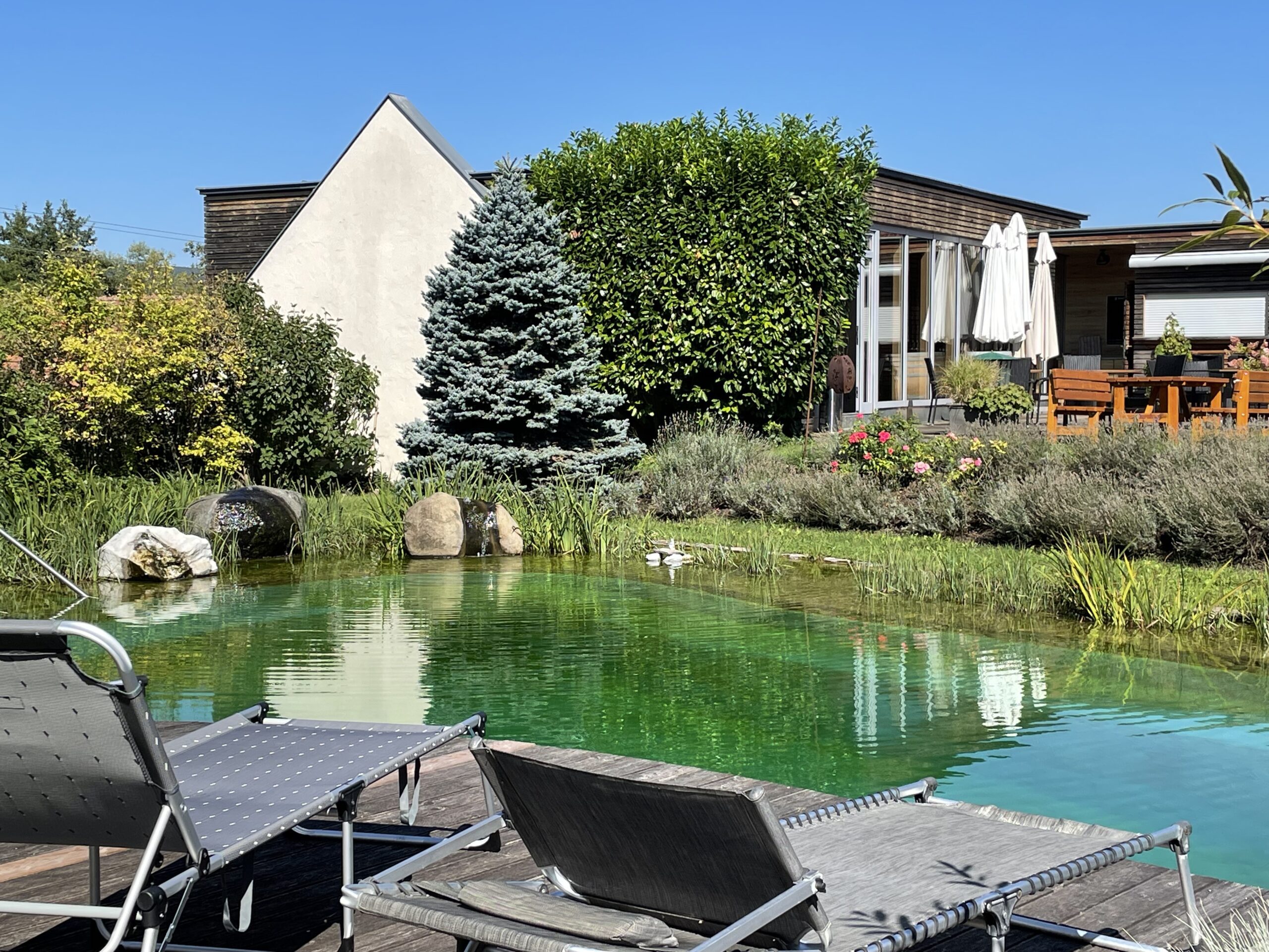 Unsere Grünanlage mit Naturpool ist eine Zone ganzheitlichen Wohlbefindens.