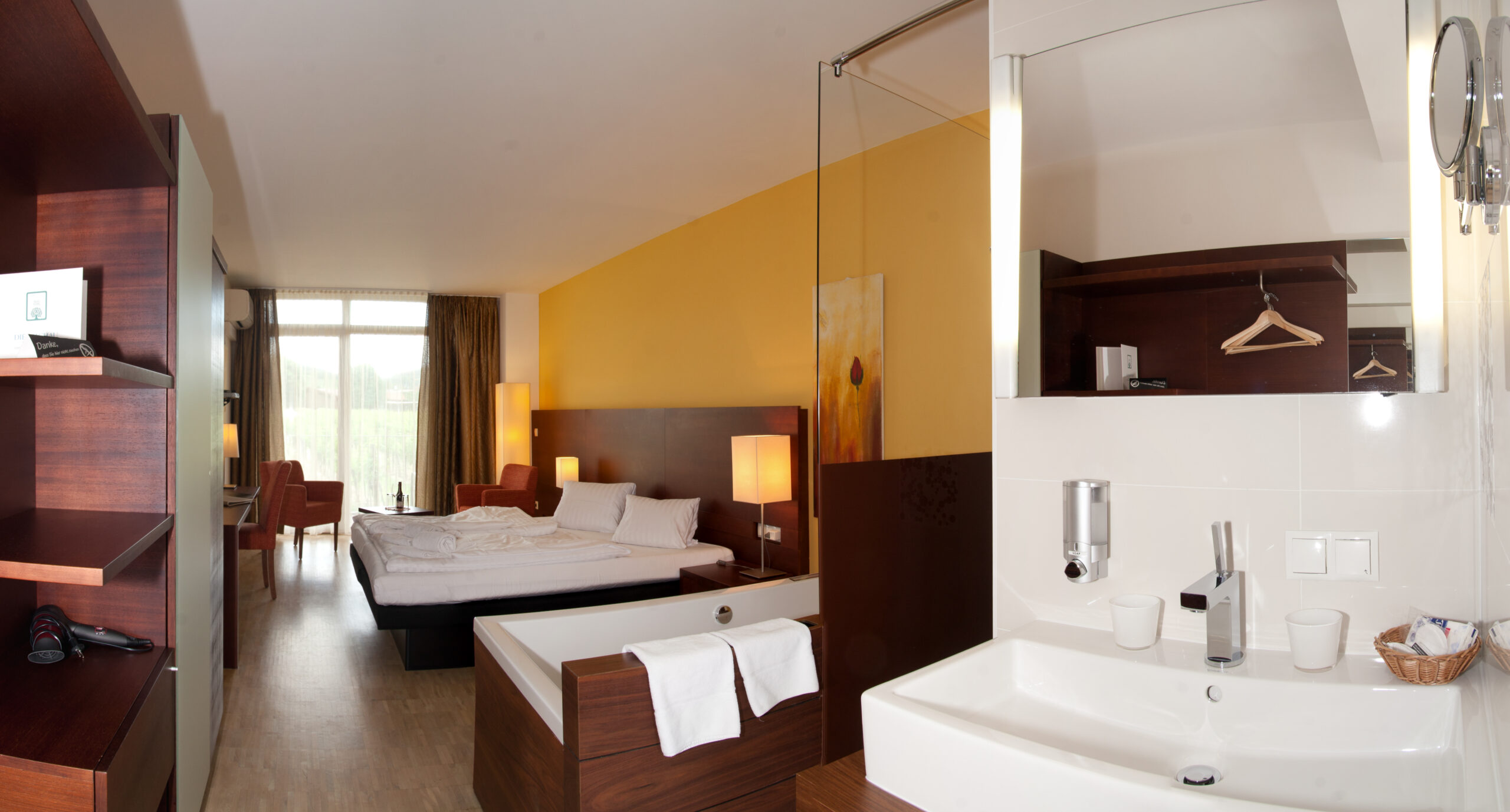 Großzügiger Balkon mit direktem Blick auf Stift Göttweig und dem Naturpool